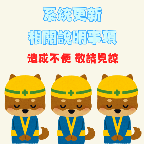 因網站近日進行作業系統更新,請需登入網站的使用者